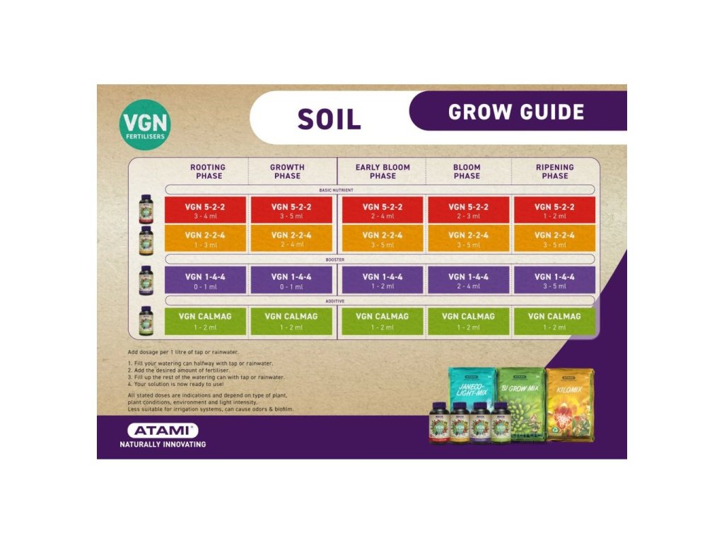 Atami VGN Calmag vám pomůže zbavit se nedostatku Ca/Mg dodáním těchto prvků. Vápník a hořčík jsou životně důležité prvky pro buněčné stěny, tvorbu buněk a fotosyntézu. Vše, co rostlina potřebuje pro silný růst a úspěšné kvetení!